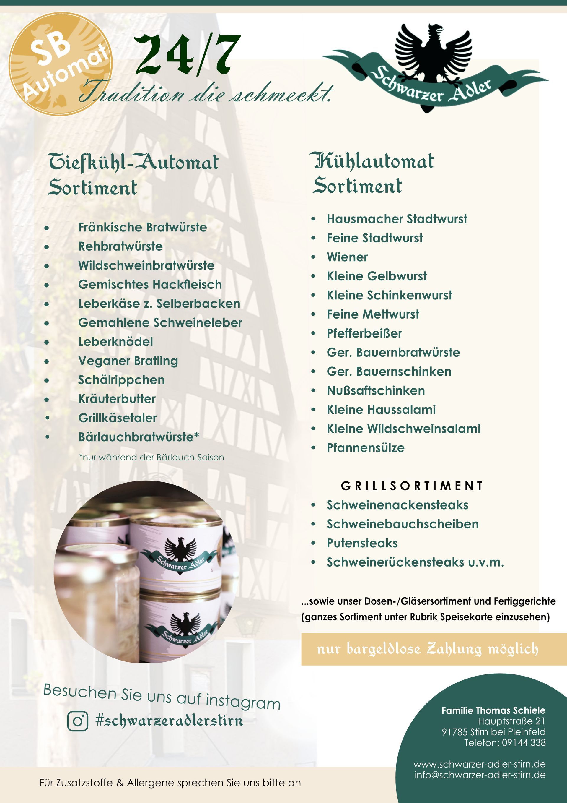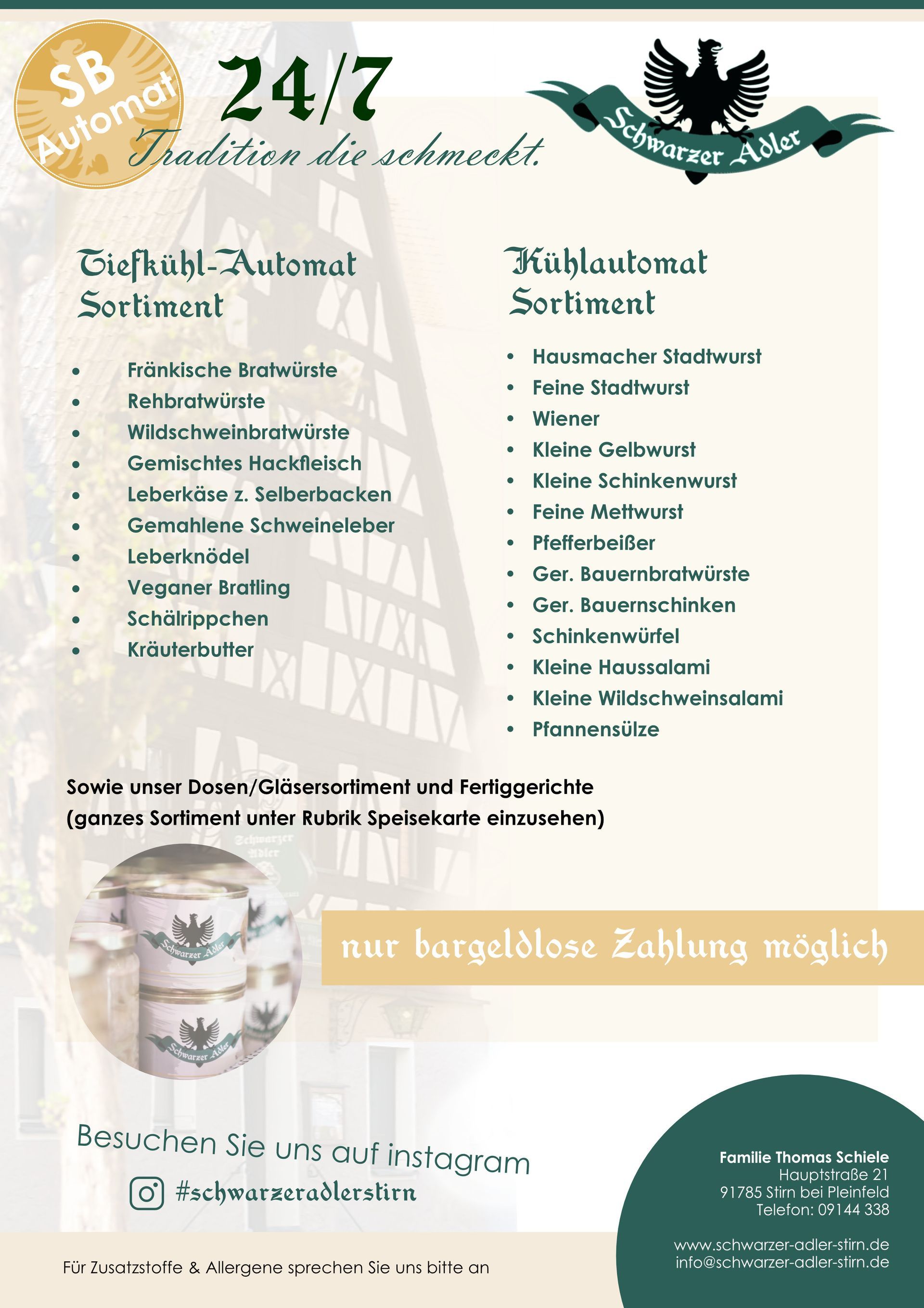 Kontakt: Schwarzer Adler - Thomas Schiele | Hauptstraße 21 | 91785 Pleinfeld | Tel.: 09144 - 338