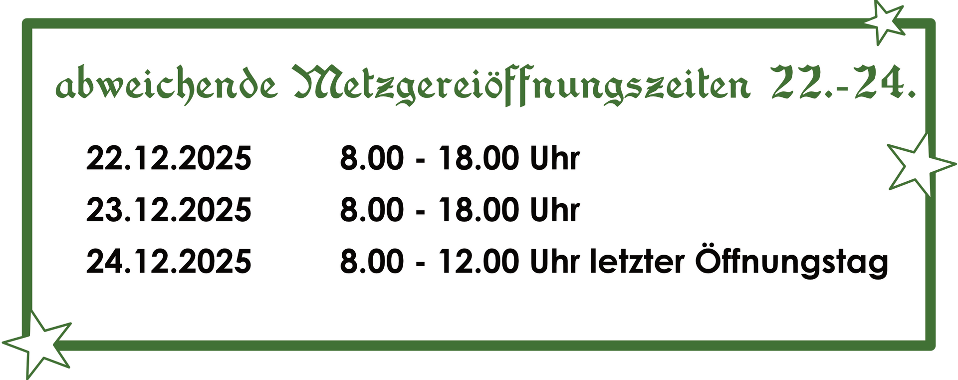 schweren Herzens müssen wir euch mitteilen, dass wir unsere Metzgerei zum 24.12.2025 schließen werden.