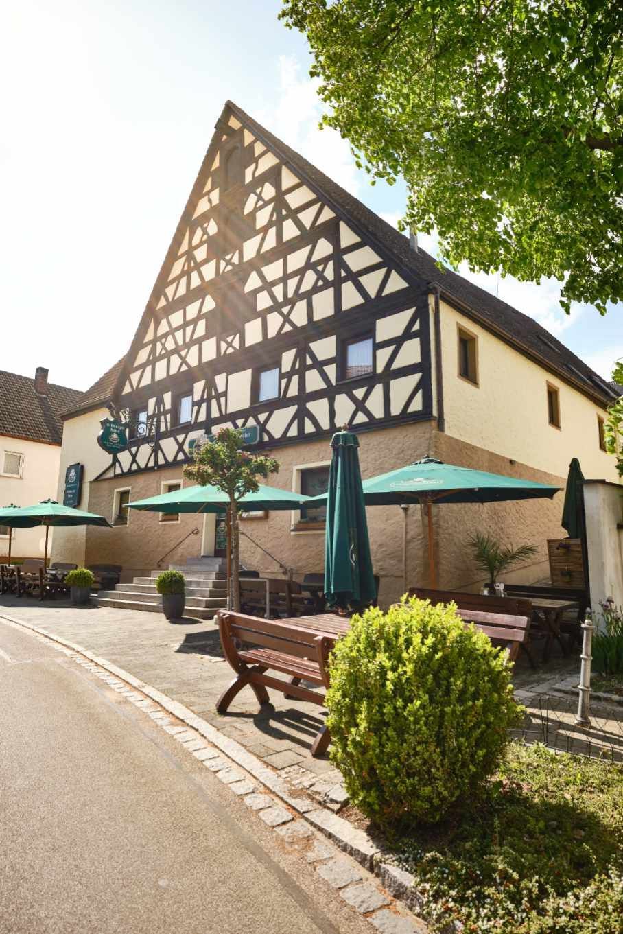 Hoch über dem Brombachsee, mitten im Kirschen- und Hopfenland liegt das kleine Dorf Stirn. In sonniger Südlage haben Sie einen prächtigen Ausblick auf lichte Wälder und die blauen Wasser des fränkischen Seenlandes. Im Schwarzen Adler, unserem mehrfach prämierten Gasthof und dem ältesten Haus am Ort, verwöhnen wir Sie mit unserer traditionell gepflegten Gastlichkeit.